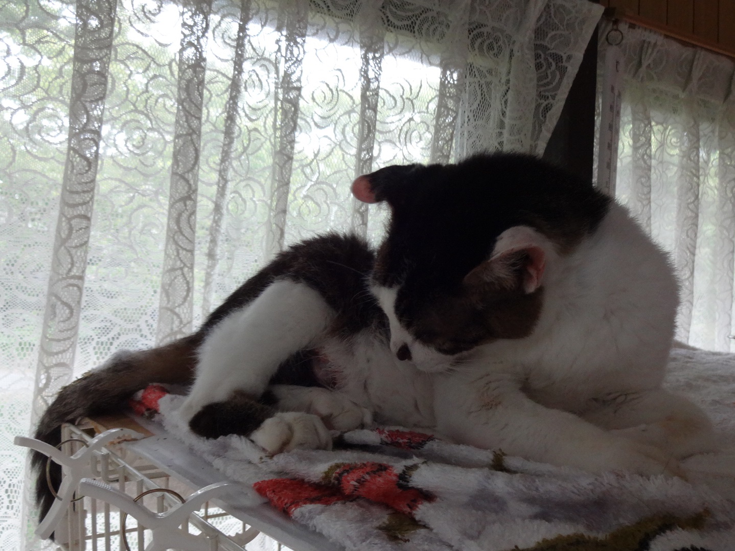 「どすこい」君は腫瘍があるところが気になるのか舐めているようで、毛がぬけています。腫瘍のところを舐めないように、カラーをつけさせたい所ですが「どすこい」君はカラーを嫌がってしまいます。