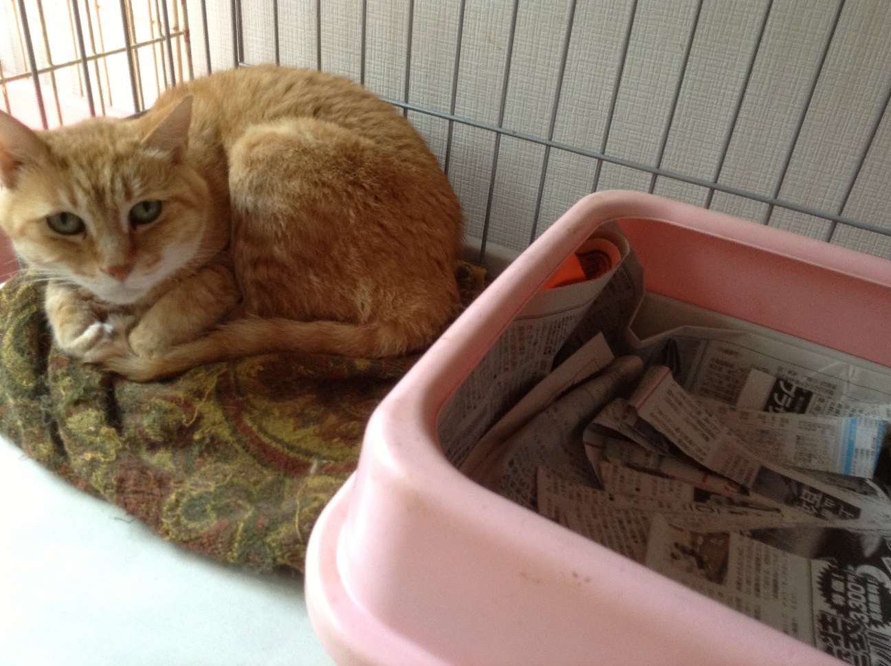 現在、約80匹の猫達が保護されており、そのうち約半分の猫達が、新聞紙のトイレを使っております。