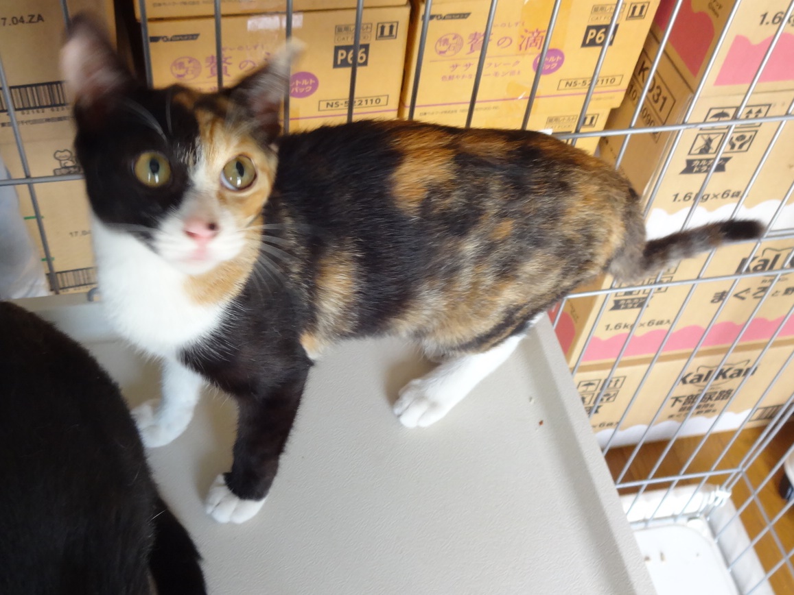 片足が黒い三毛ちゃん(女の子) アゴを撫でるとゴロゴロ喉を鳴らしてくれます(男の子)